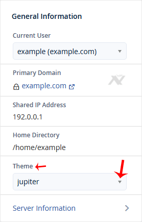 2. In the General Information panel. You should see a Theme option with a drop-down menu.